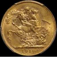 1919 Perth George V Large Head Sovereign Choice Unc (PCGS MS64) 1919 Perth George V Large Head Sovereign Choice Unc (PCGS MS64) 1919 Perth George V Large Head Sovereign Choice Unc (PCGS MS64) $1,250.00