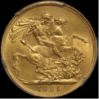 1925 Melbourne George V Large Head Sovereign Choice Unc (PCGS MS64) 1925 Melbourne George V Large Head Sovereign Choice Unc (PCGS MS64) 1925 Melbourne George V Large Head Sovereign Choice Unc (PCGS MS64) $1,750.00