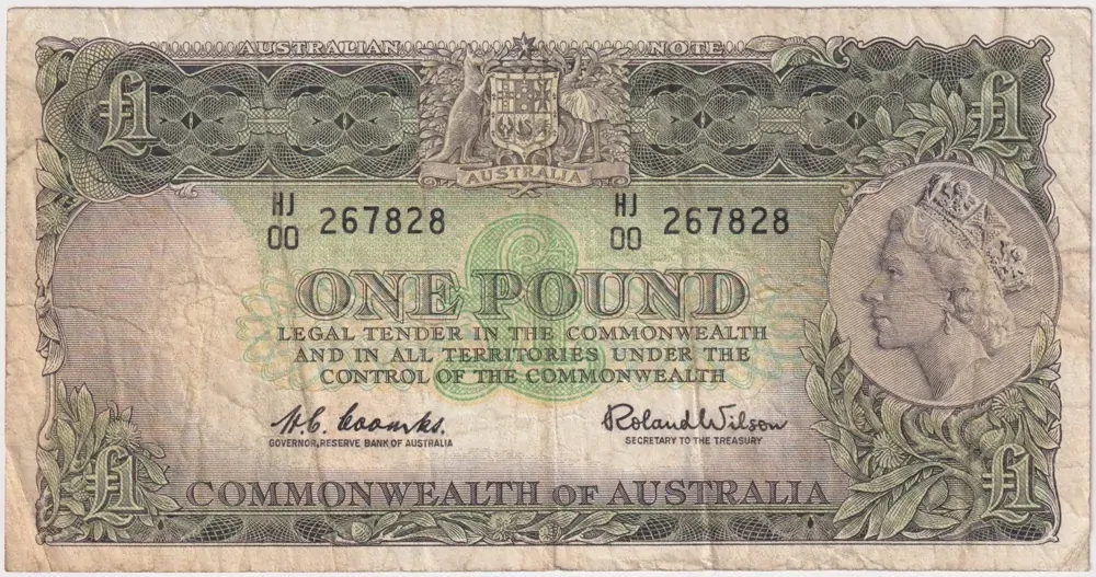 This is the cheapest banknote issued by Australia prior to 1966.