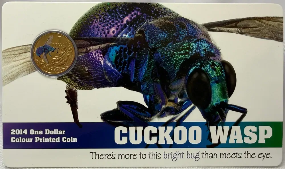 2014 1 Dollar Coloured Uncirculated Coin Bright Bugs Cuckoo Wasp