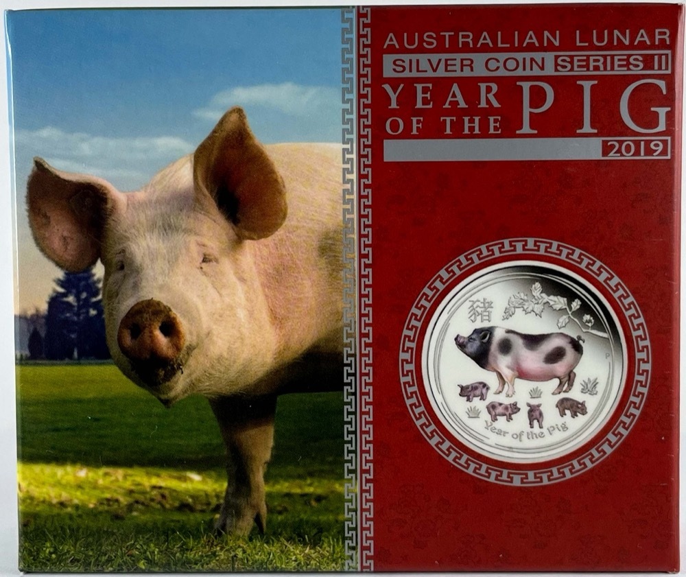 2019 Silver 1oz Coloured Proof Coin Lunar Year of the Pig