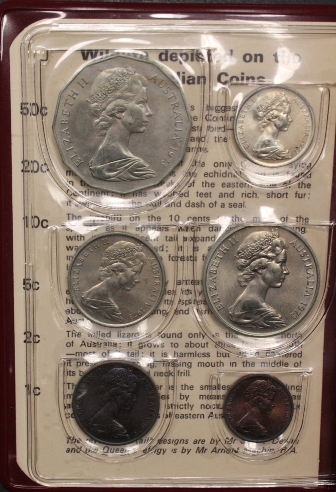 A complete set of Australian decimal coins issued in 1973 in UNC condition.