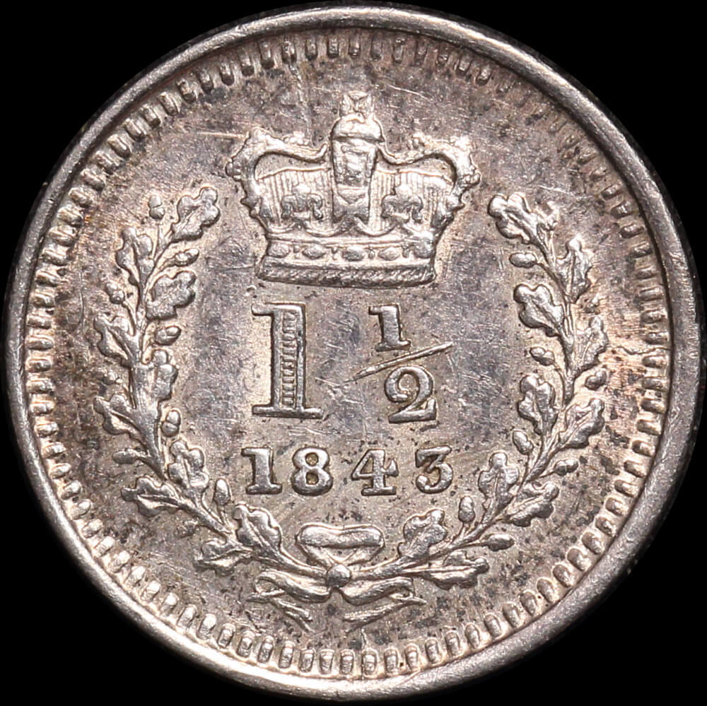 Ceylon 1843 Silver 1 1/2 Pence KM#728 about Unc