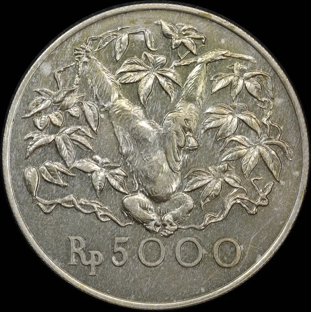 Indonesia 1974 Silver 5,000 Rupiah KM#40 Uncirculated - Orangutan