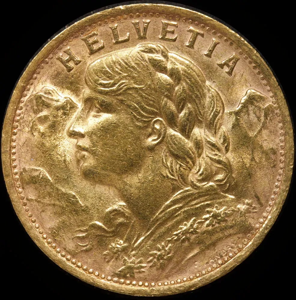 Switzerland 1935 L-B Gold 20 Francs KM#35.1 good EF